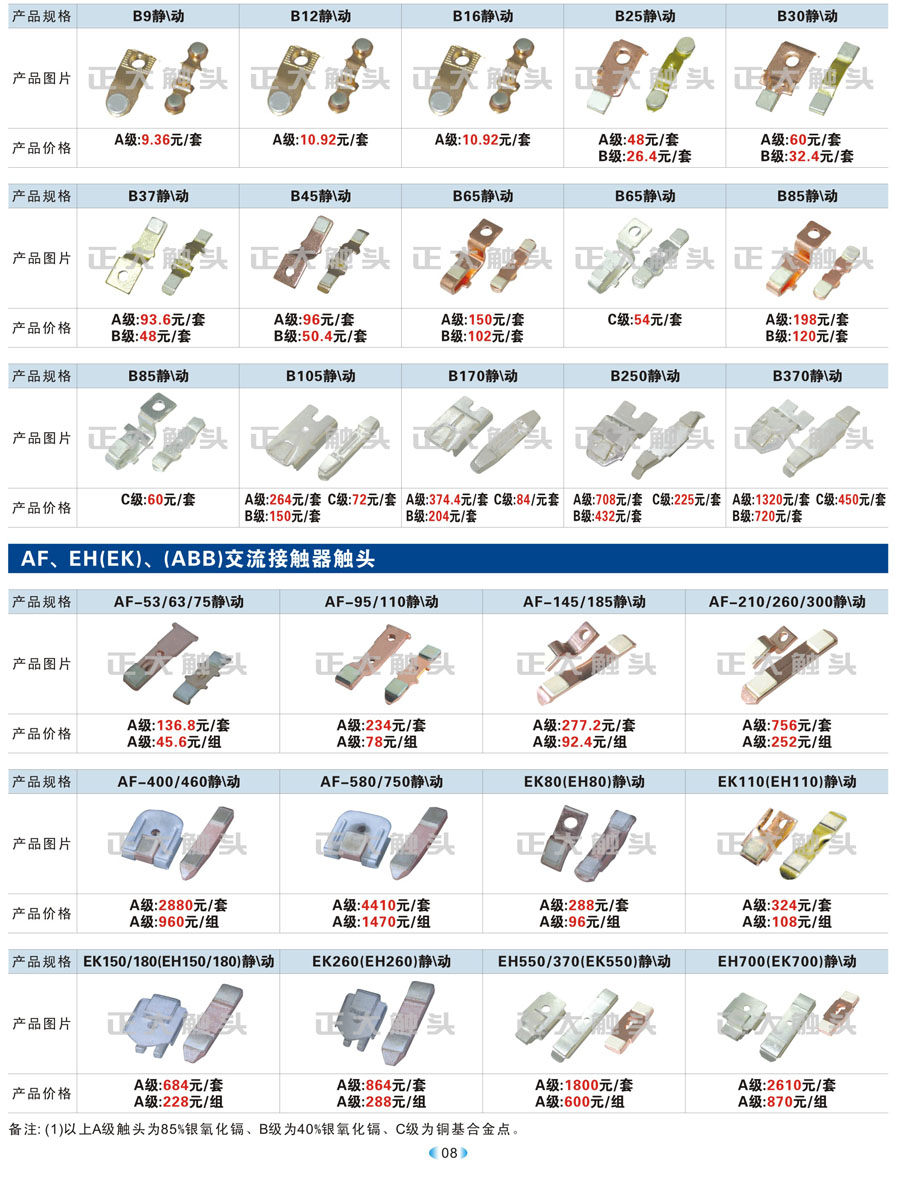B交流、AF、EH(EK)、(ABB)交流接触器触头